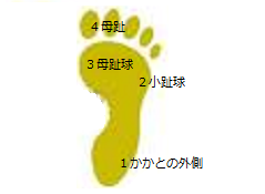 1かかとの外側→2小趾球 3母趾球→4母趾 |